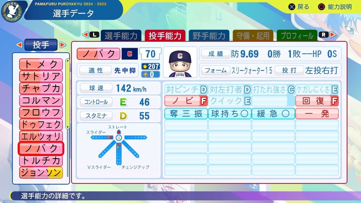 ノビF・・・クセ球とか言われてたけどいわゆるオジギングファスト スタットキャストでも(おそらく)チェンジアップ扱いで、ナチュラルチェンジアップみたいな感じで逆に打ちづらい